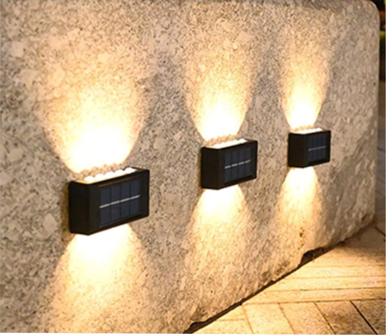 La Lámpara Solar De Pared Arriba Y Abajo es una solución moderna, decorativa y funcional para iluminar espacios exteriores sin consumo eléctrico. Su diseño de iluminación superior e inferior, con vidrio de doble cara, crea un efecto visual elegante con luz suave y no deslumbrante, ideal para realzar la estética de cualquier ambiente.Funciona 100 % con energía solar, gracias a su panel solar de silicio policristalino, que ofrece una eficiencia de conversión de hasta 17 %, permitiendo una carga rápida durante el día y una iluminación constante por la noche. Incorpora sensor de luz inteligente, que enciende la lámpara automáticamente al anochecer y la apaga al amanecer, sin necesidad de intervención manual.Fabricada en ABS de alto impacto y con protección impermeable IP65, está diseñada para resistir lluvia, polvo y condiciones climáticas adversas. Con solo 6–8 horas de carga, puede ofrecer entre 8–10 horas de iluminación continua, siendo perfecta para jardines, patios, entradas y áreas de paso.⚙️ Características Destacadas☀️ Iluminación superior e inferior para efecto decorativo elegante🔋 Energía solar 100 %, sin cables ni consumo eléctrico🌞 Panel solar policristalino de alta eficiencia (hasta 17 %)🌙 Sensor de luz inteligente: encendido y apagado automático💧 Impermeable IP65, resistente a todo clima⏱️ Autonomía: 8–10 horas con carga de 6–8 horas🧱 Material ABS de alto impacto, duradero y resistente🎯 Usos RecomendadosJardines y patiosEntradas y fachadasVallas y murosCaminos y escalerasDecoración exterior en eventos o festividades