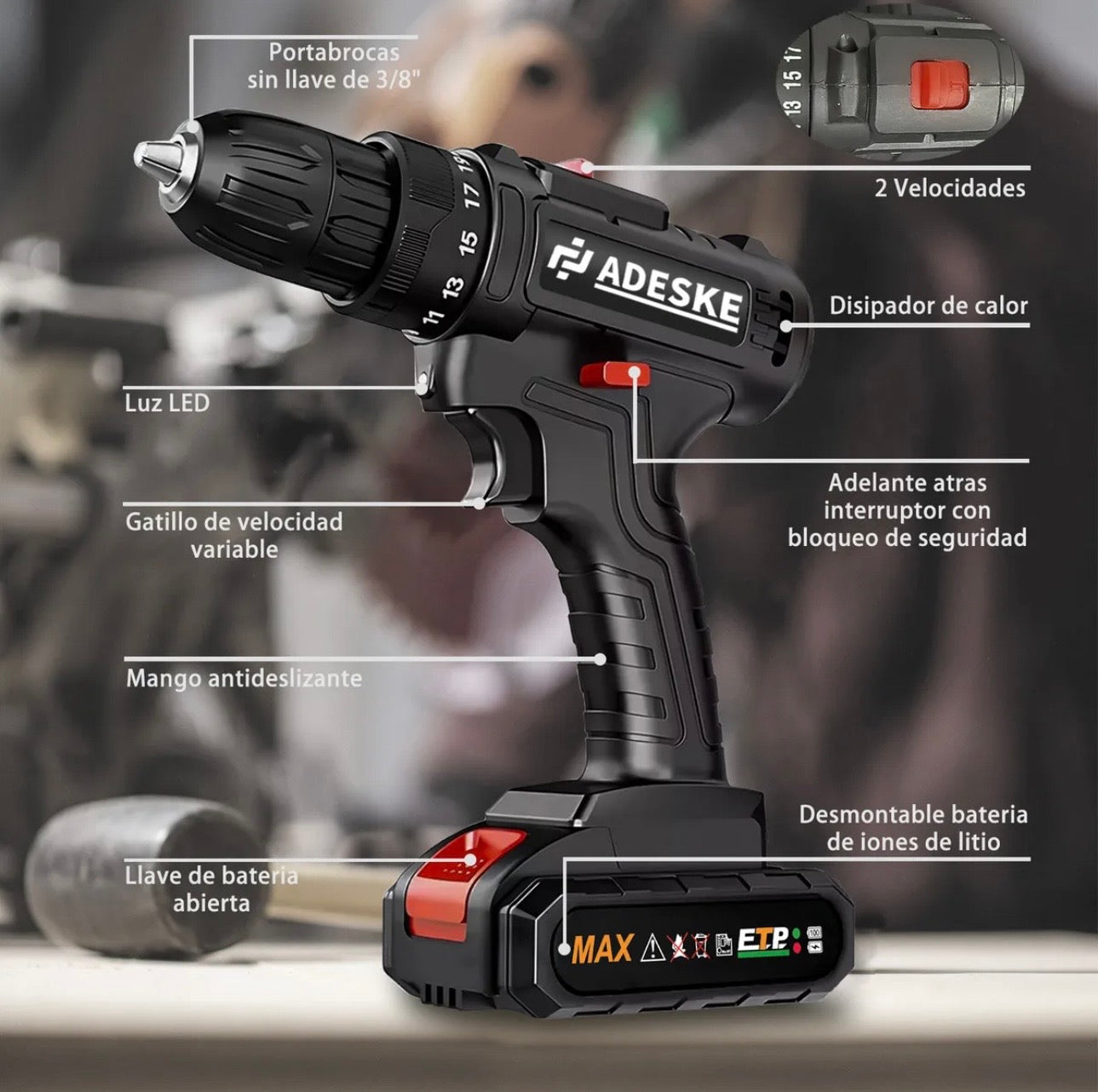 ➤ Amplias aplicaciones: El taladro inalámbrico es un taladro ideal para madera, metal y plástico para colgar cuadros, montar o reparar muebles, apretar tornillos y muchos otros proyectos de bricolaje y manualidades.